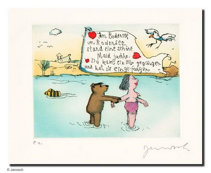 BODENSEE – und alle Janosch Bilder, Zeichnungen und Grafiken PREISWERT bei der autorisierten Janosch Galerie das-perfekte-bild.de kaufen