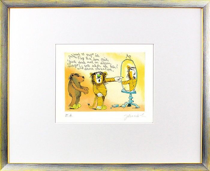 Janosch – GUCK DOCH MAL IN DIESEN SPIEGEL – original Radierung handsigniert-silb…