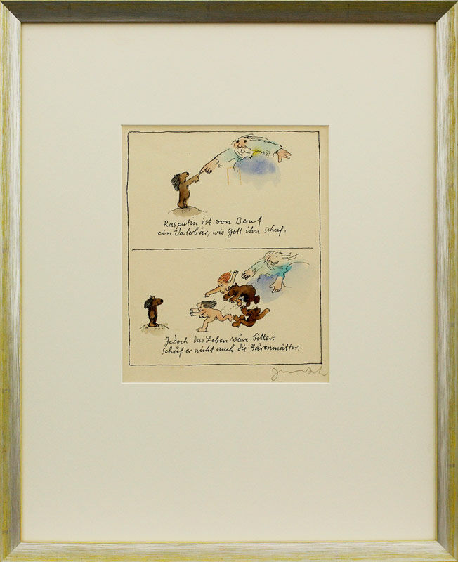 Janosch – RASPUTIN IST VON BERUF EIN VATERBÄR… – original Aquarell handsignier…