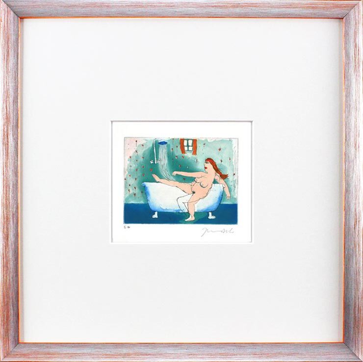 SUSANNE STEIGT ALLEIN INS BAD – und alle Janosch Bilder, Zeichnungen und Grafiken PREISWERT bei der autorisierten Janosch Galerie das-perfekte-bild.de kaufen