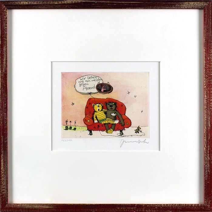Janosch – WIR LIEBEN UNS AM MEISTEN GEGEN ABEND – original Radierung handsignier…