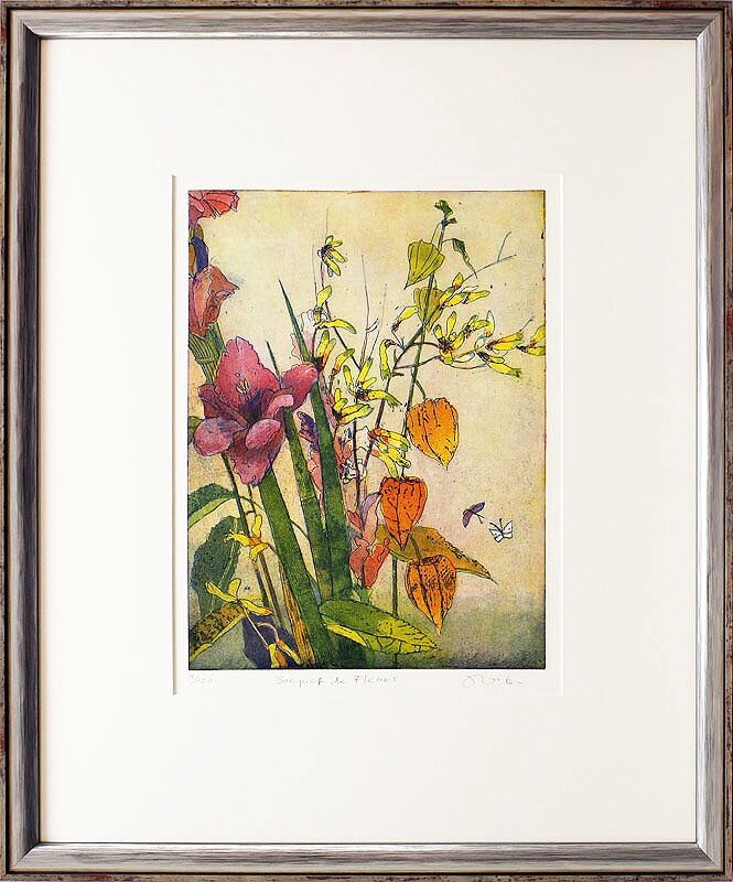 Jutta Votteler – Bouquet de fleurs – Original Farb-Radierung – limitiert und han…