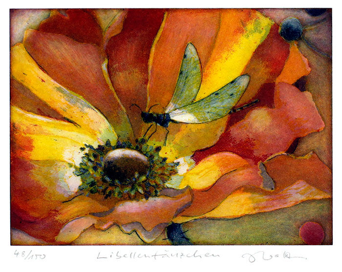 Jutta Votteler – Libellentänzchen – Original Farb-Radierung – limitiert und hand…
