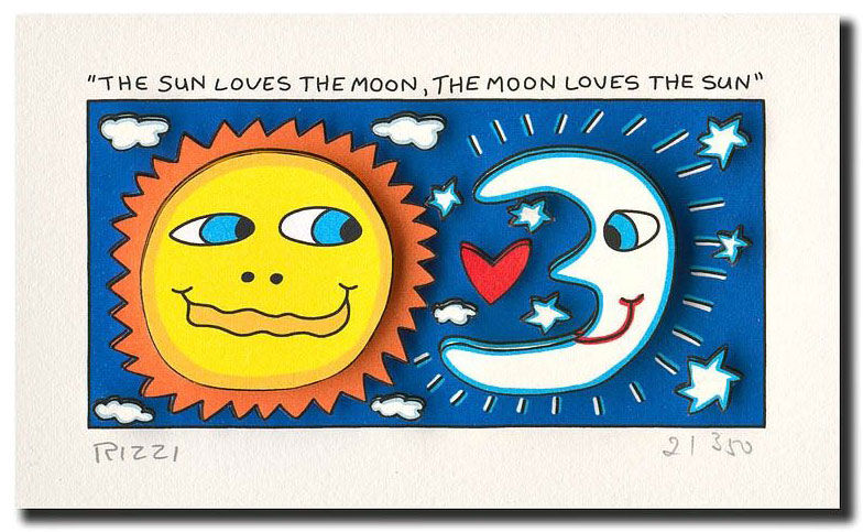 James Rizzi THE SUN LOVES THE MOON. Orig. 3D Collage drucksigniert – ohne Rahmen…