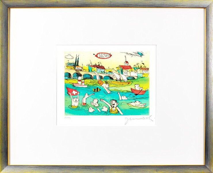 BASLER RHEINSCHWIMMEN – und alle Janosch Bilder, Zeichnungen und Grafiken PREISWERT bei der autorisierten Janosch Galerie das-perfekte-bild.de kaufen