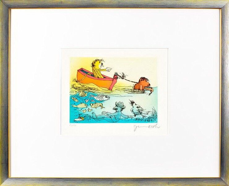 DA HINTEN LIEGT AMERIKA – IN SIEBEN JAHREN SIND WIR DA – und alle Janosch Bilder, Zeichnungen und Grafiken PREISWERT bei der autorisierten Janosch Galerie das-perfekte-bild.de kaufen