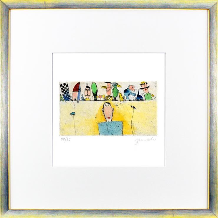 Janosch – DER MANN IN GELB – original Radierung handsigniert-silber gelb