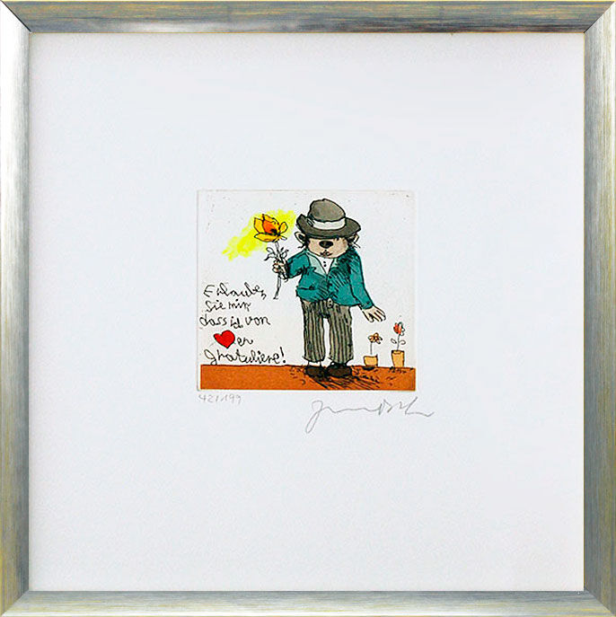 Janosch – ERLAUBEN SIE MIR, DASS ICH VON HERZEN GRATULIERE – original Radierung …