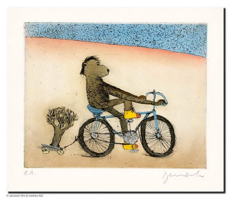 FAHRRADBÄR… – und alle Janosch Bilder, Zeichnungen und Grafiken PREISWERT bei der autorisierten Janosch Galerie das-perfekte-bild.de kaufen