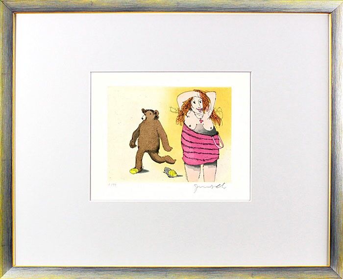 FRAU MIT BÄR – und alle Janosch Bilder, Zeichnungen und Grafiken PREISWERT bei der autorisierten Janosch Galerie das-perfekte-bild.de kaufen