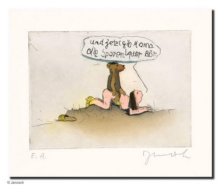 GIB MAMA DIE SPOREN – Erotik-Akt-Bild und alle Janosch Zeichnungen und Grafiken PREISWERT bei der autorisierten Janosch Galerie das-perfekte-bild.de kaufen