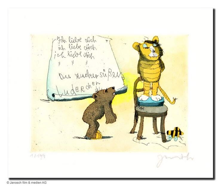 ICH LIEBE DICH DU ZUCKERSÜSSES LUDERCHEN… – und alle Janosch Bilder, Zeichnungen und Grafiken PREISWERT bei der autorisierten Janosch Galerie das-perfekte-bild.de kaufen