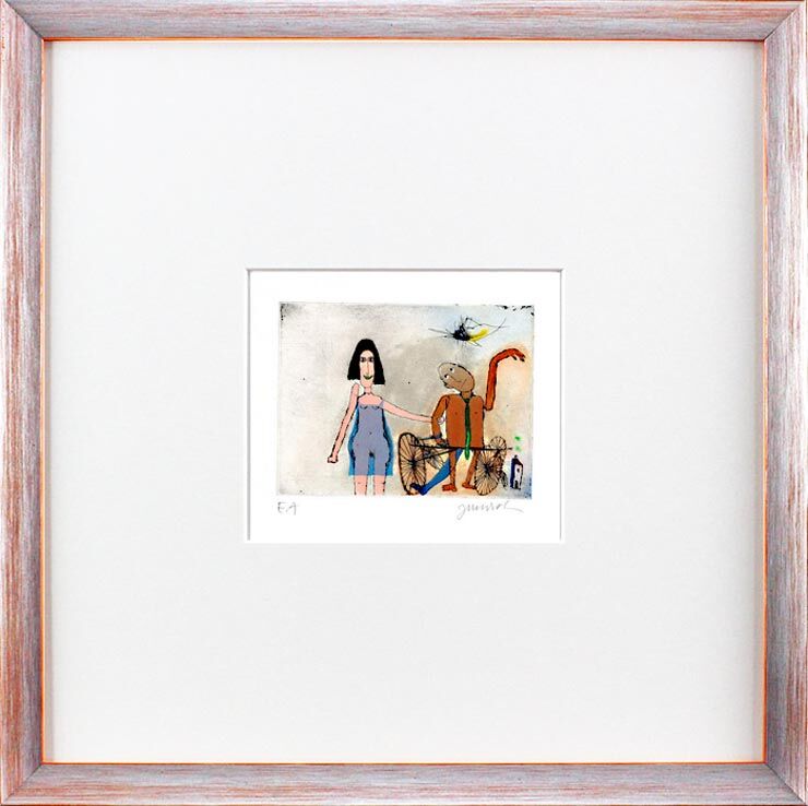 ICH UND MEIN MANN MANNI MANNGOLD MIT SEINEM RAD… – und alle Janosch Bilder, Zeichnungen und Grafiken PREISWERT bei der autorisierten Janosch Galerie das-perfekte-bild.de kaufen