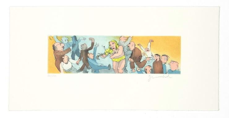 Janosch – MARIECHEN SPIELT SO GELB DIE FIEDEL – original Radierung handsigniert …