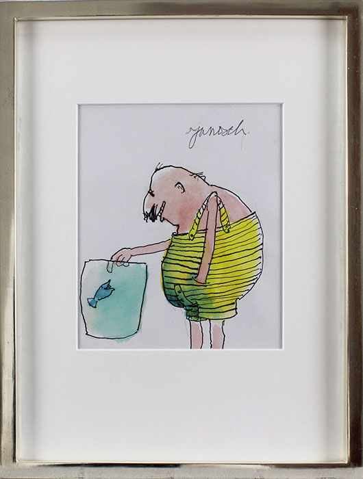 Janosch – MEIN KLEINER GRÜNER FISCH IM GRÜNEN GLAS – original Aquarell handsigni…