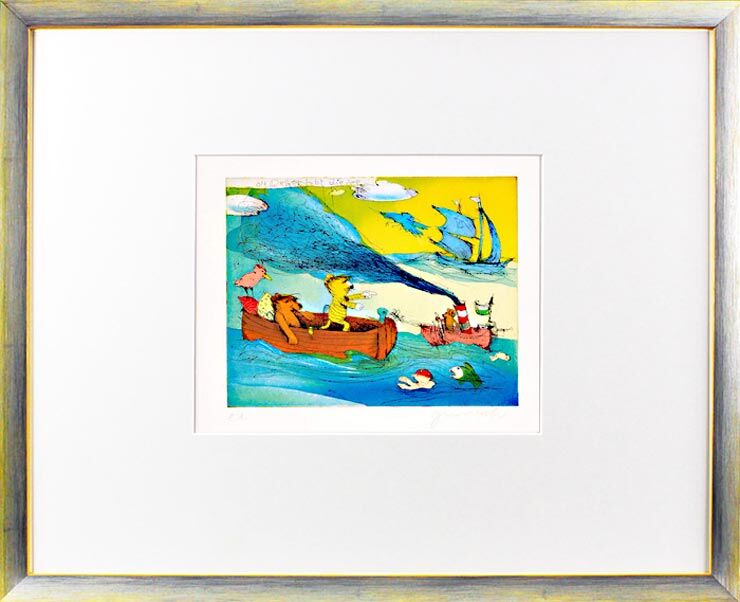 Janosch – OH WEH ES TOBT DIE SEE – original Radierung handsigniert-silber gelb