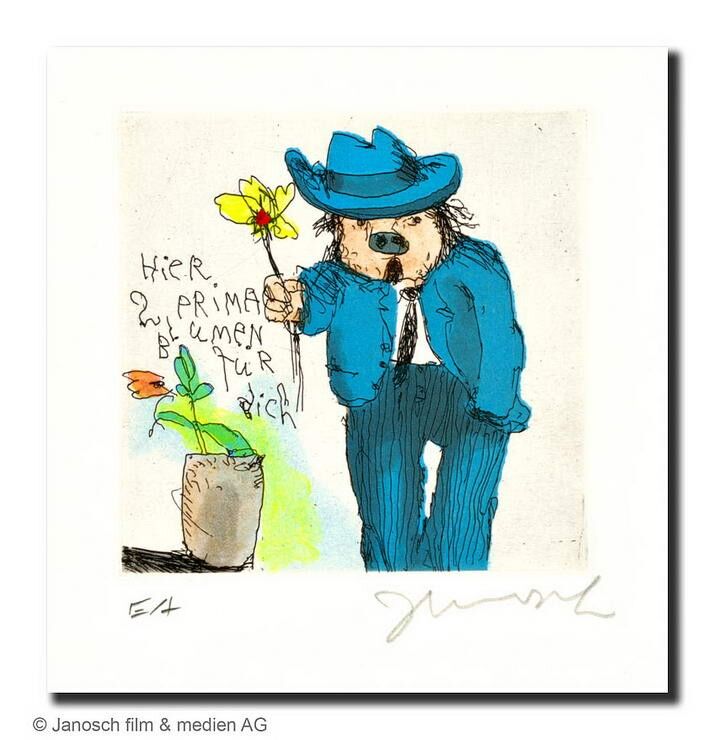 Janosch PRIMA BLUMEN für Dich – und alle Janosch Bilder und Zeichnungen PREISWERT bei der autorisierten Janosch Galerie das-perfekte-bild.de kaufen