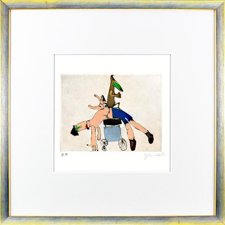 Janosch – RADFAHRER ALPTRAUM – original Radierung handsigniert-silber gelb