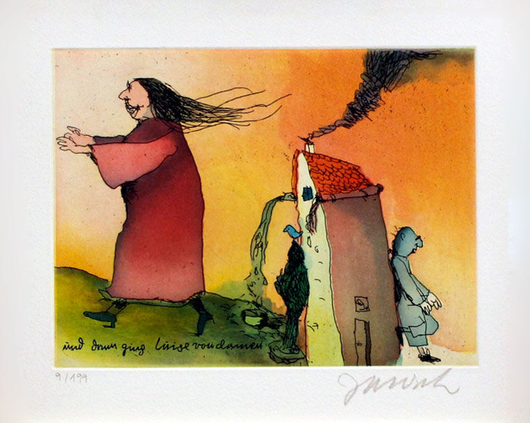 Janosch – …UND DANN GING LUISE VON DANNEN – original Radierung handsigniert – …