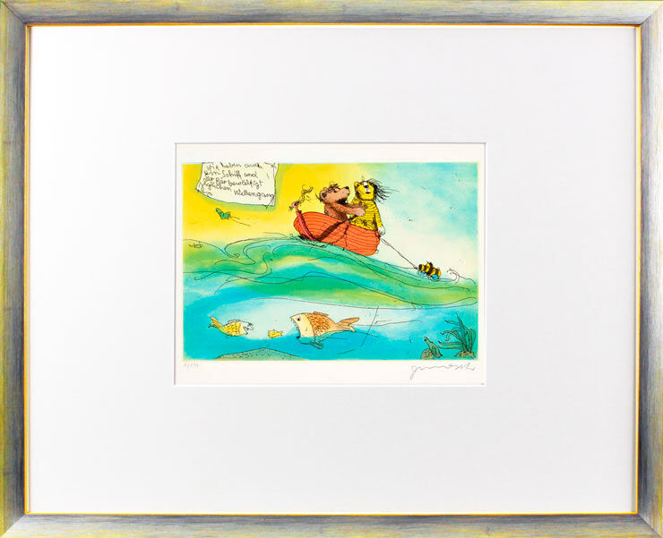 WIR HABEN AUCH EIN SCHIFF, UND DER BÄR BEWÄLTIGT JEGLICHEN WELLENGANG – und alle Janosch Bilder, Zeichnungen und Grafiken PREISWERT bei der autorisierten Janosch Galerie das-perfekte-bild.de kaufen