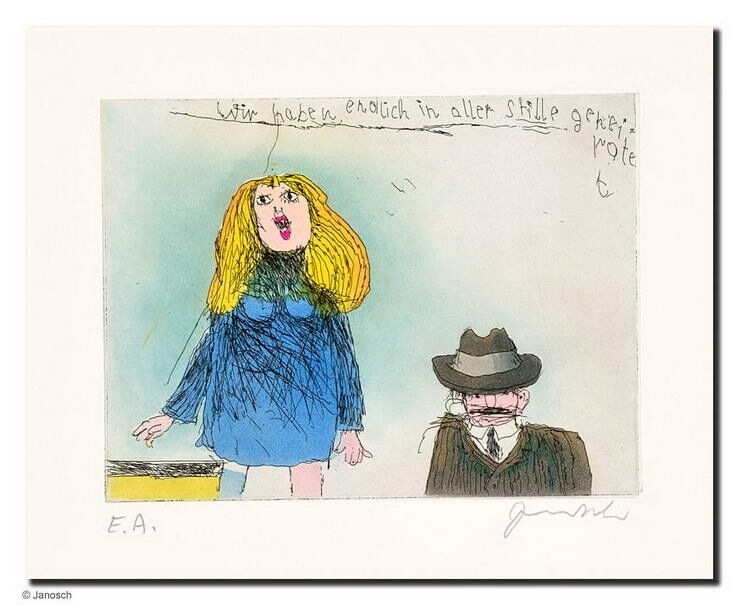 WIR HABEN ENDLICH IN ALLER STILLE GEHEIRATET – und alle Janosch Bilder, Zeichnungen und Grafiken PREISWERT bei der autorisierten Janosch Galerie das-perfekte-bild.de kaufen