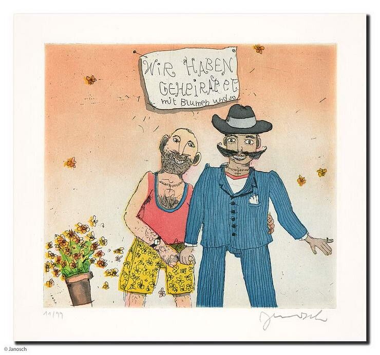 WIR HABEN GEHEIRATET (JUNGS) – und alle Janosch Bilder, Zeichnungen und Grafiken PREISWERT bei der autorisierten Janosch Galerie das-perfekte-bild.de kaufen