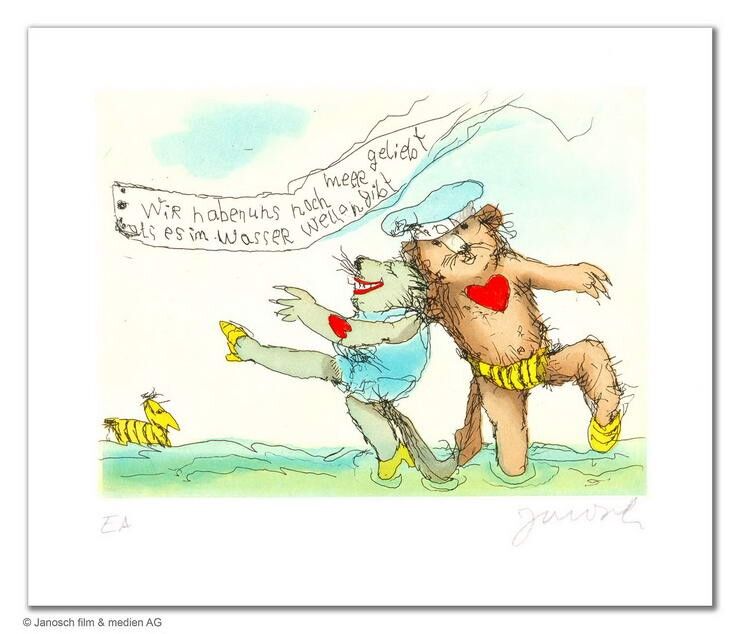 WIR HABEN UNS NOCH MEER GELIEBT ALS ES IM WASSER WELLEN GIBT – und alle Janosch Bilder, Zeichnungen und Grafiken PREISWERT bei der autorisierten Janosch Galerie das-perfekte-bild.de kaufen