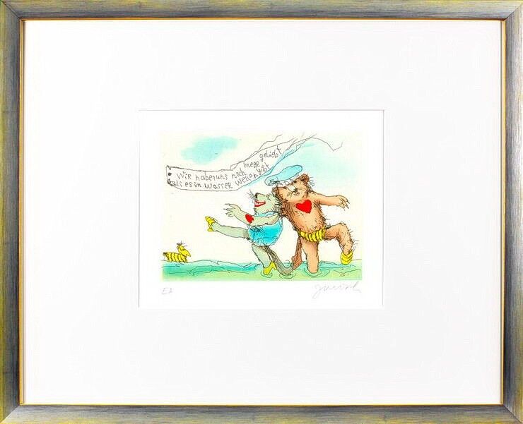 WIR HABEN UNS NOCH MEER GELIEBT ALS ES IM WASSER WELLEN GIBT – und alle Janosch Bilder, Zeichnungen und Grafiken PREISWERT bei der autorisierten Janosch Galerie das-perfekte-bild.de kaufen