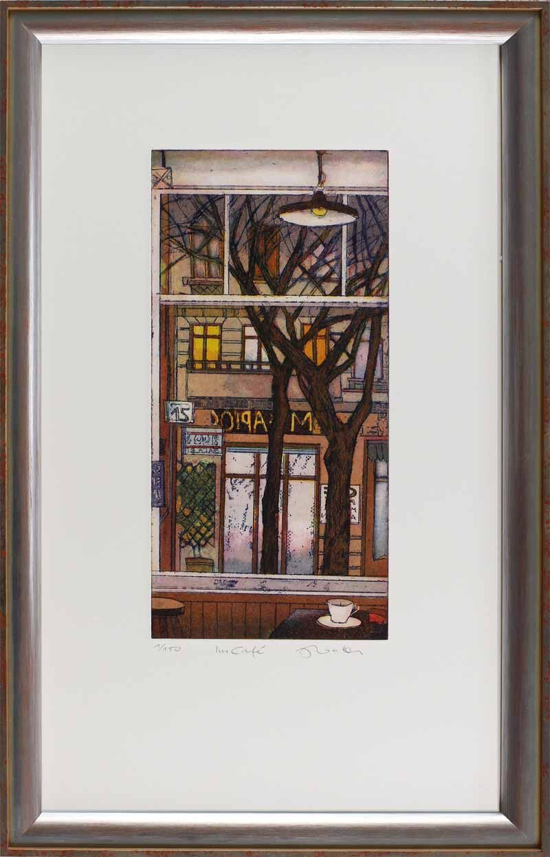Jutta Votteler – Im Café – Original Farb-Radierung – limitiert und handsigniert