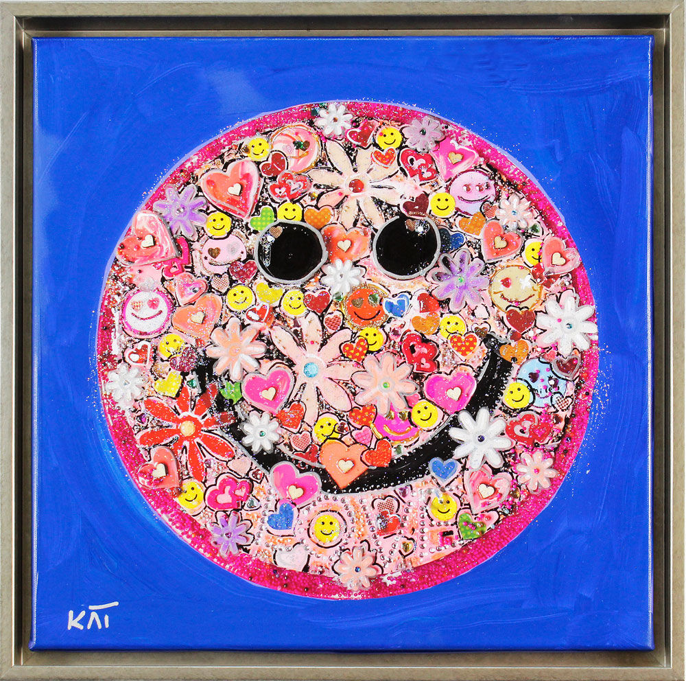 Kat Lassen – BE HAPPY SMILEY PINK ROYAL – Original Mischtechnik – handsigniertes…