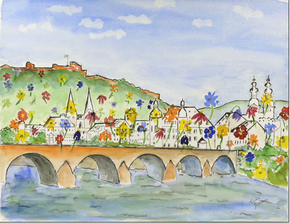 Buga Koblenz Blueht Erika Girmann mit vielen Sehenswürdigkeiten. Geschmackvolle Bilder auf Leinwand für Wohnraum und Büro. RIESENAUSWAHL PREISWERT !