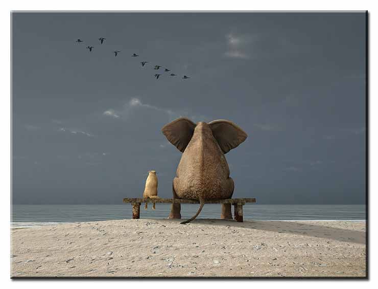 Kunst Beste Freunde – Elefant und Hund und viele andere moderne Kunstwerke auf Leinwand in Ihrer Wunschgröße online kaufen. RIESENAUSWAHL PREISWERT !