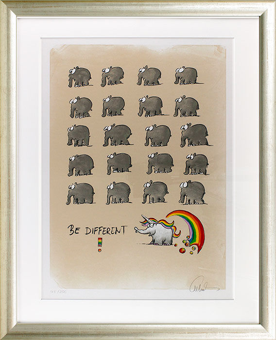BE DIFFERENT – EINHORN und alle Otto Bilder, Zeichnungen und Grafiken PREISWERT bei der autorisierten Otto Waalkes Galerie das-perfekte-bild.de kaufen