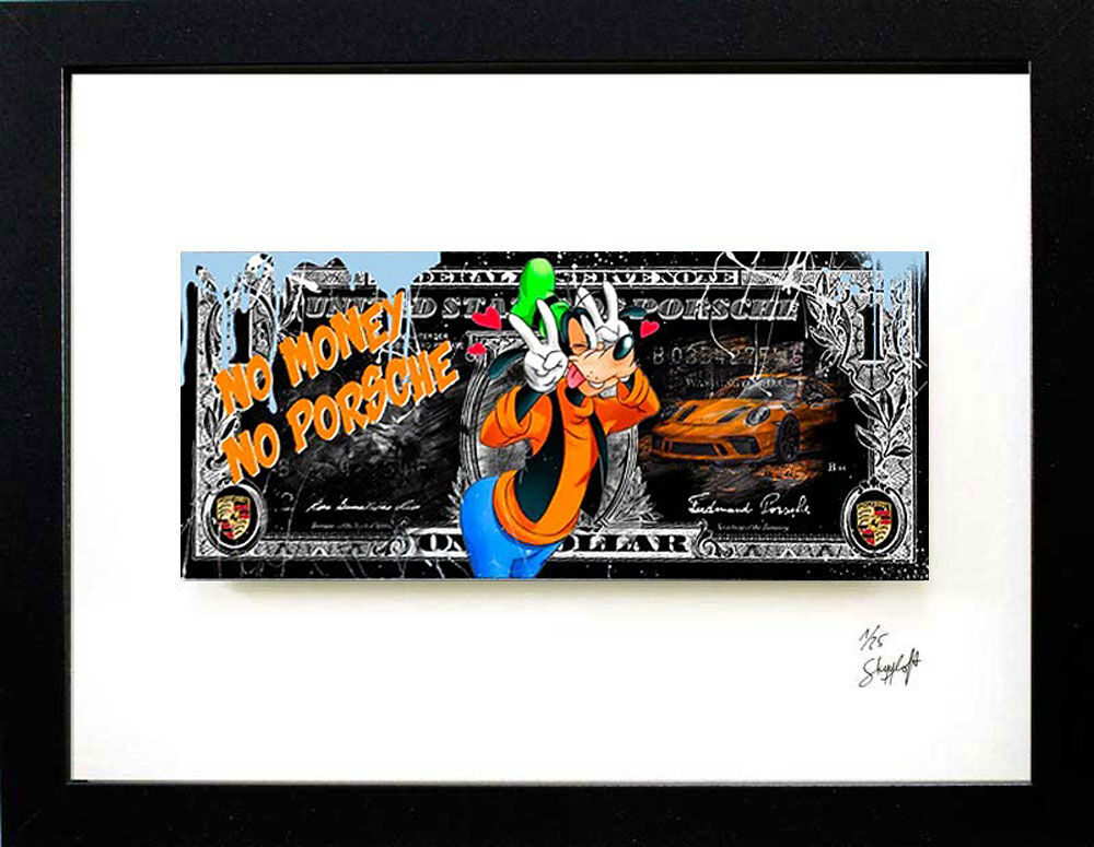 SKYYLOFT GOOFY Dollar – No Money No Porsche und Bilder auf Aluminium PREISGÜNSTIG kaufen bei das-perfekte-bild.de , autorisierte Skyyloft GALERIE
