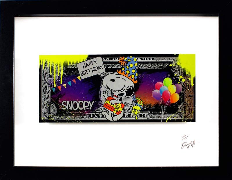 SKYYLOFT Bilder - Happy Birthday Snoopy Dollar - Bild mit Museumsglas und Bilder...