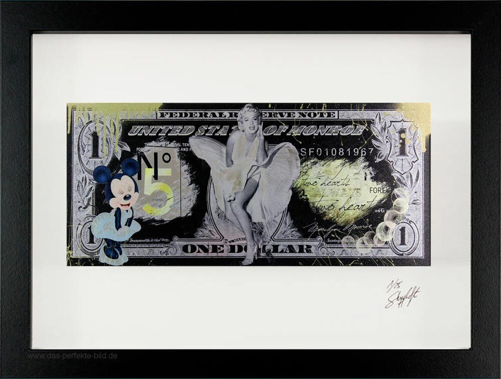SKYYLOFT Bilder – Minnie Monroe Dollar – Bild mit Museumsglas und Bilderrahmen …