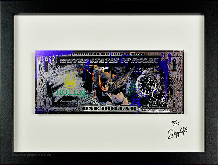 SKYYLOFT ROLEX BATMAN Dollar & Bilder auf Aluminium PREISGÜNSTIG kaufen bei das-perfekte-bild.de, autorisierte Skyyloft GALERIE