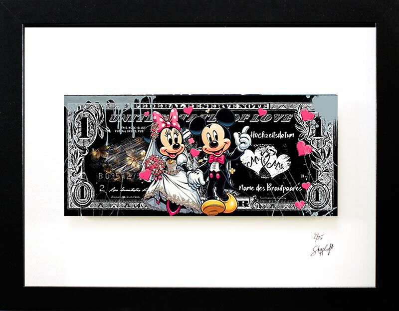 SKYYLOFT Bilder – Love Wedding – Dollar – Bild mit Museumsglas und Bilderrahmen