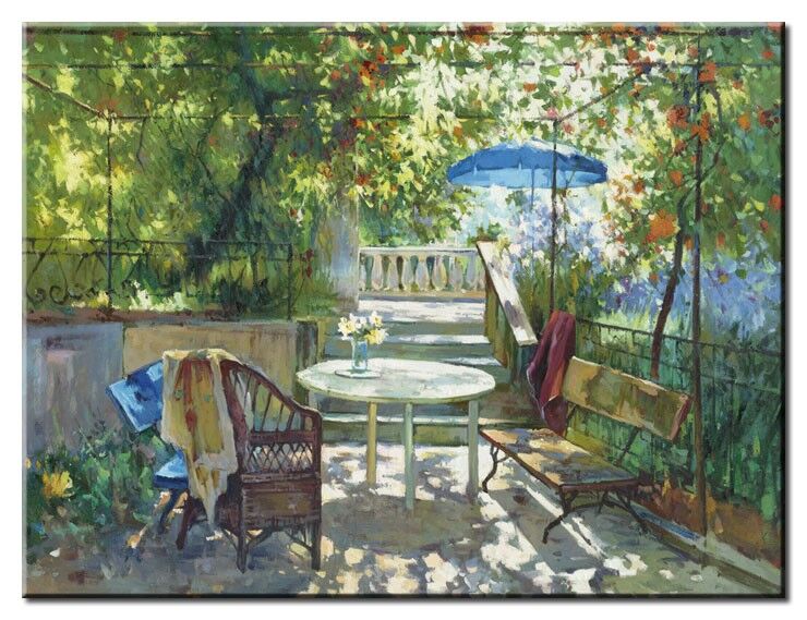 Totti Moreno – Besuch auf der Sommerterrasse-90 x 120 cm
