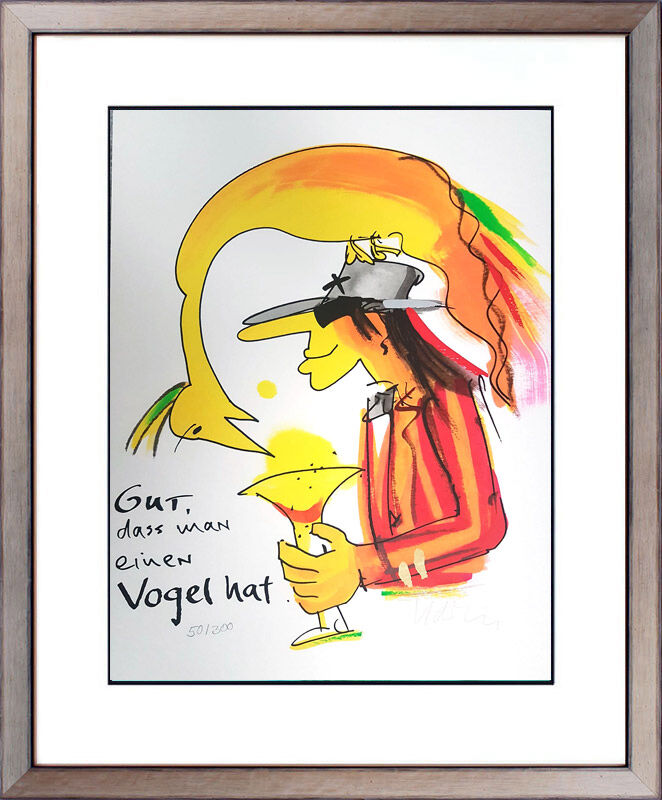 Gut daß man einen Vogel hat, original Udo Lindenberg handsigniert. Autorisierte Udo Lindenberg Bilder-Galerie Wutzke